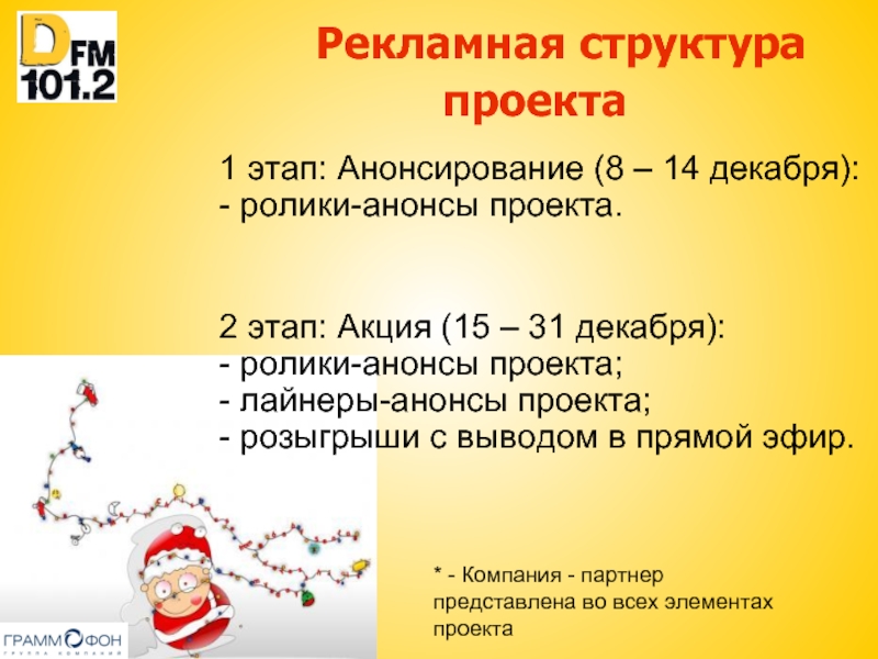 15 роликов анонсов. Упоминание компании-партнера 5 сек.;