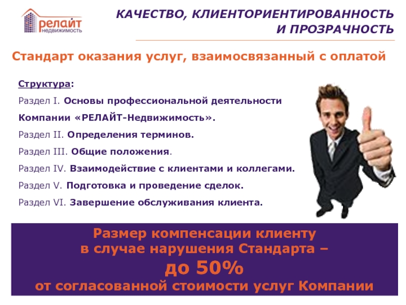 Стандарт оказания услуг, взаимосвязанный с размером оплаты