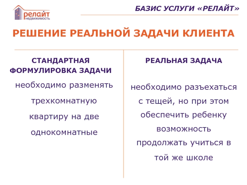 Первично – решение задачи, а не «покупка», «продажа» или «обмен»