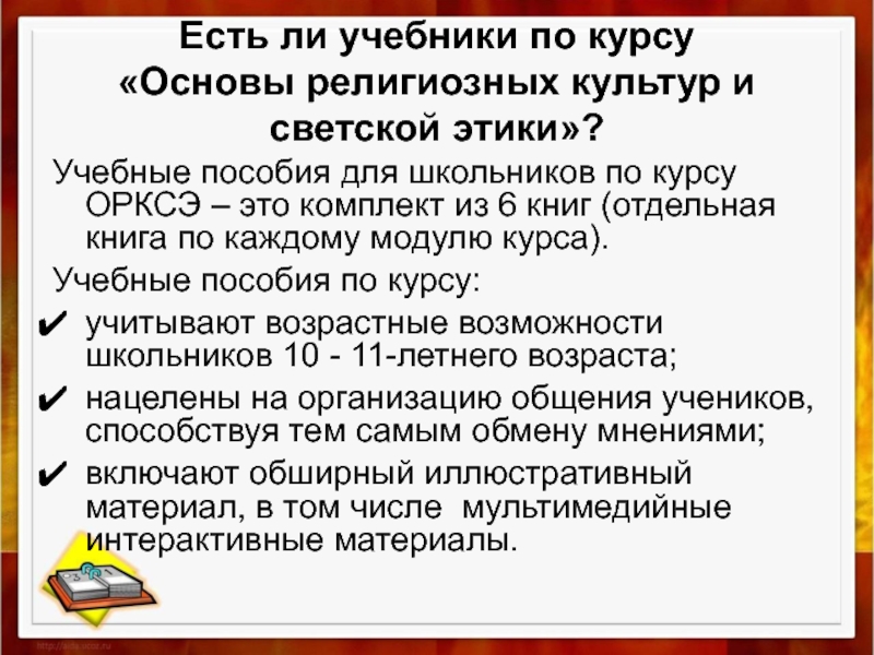 для школьников по курсу ОРКСЭ – это комплект из 6 книг (отдельная книга по каждому модулю курса).