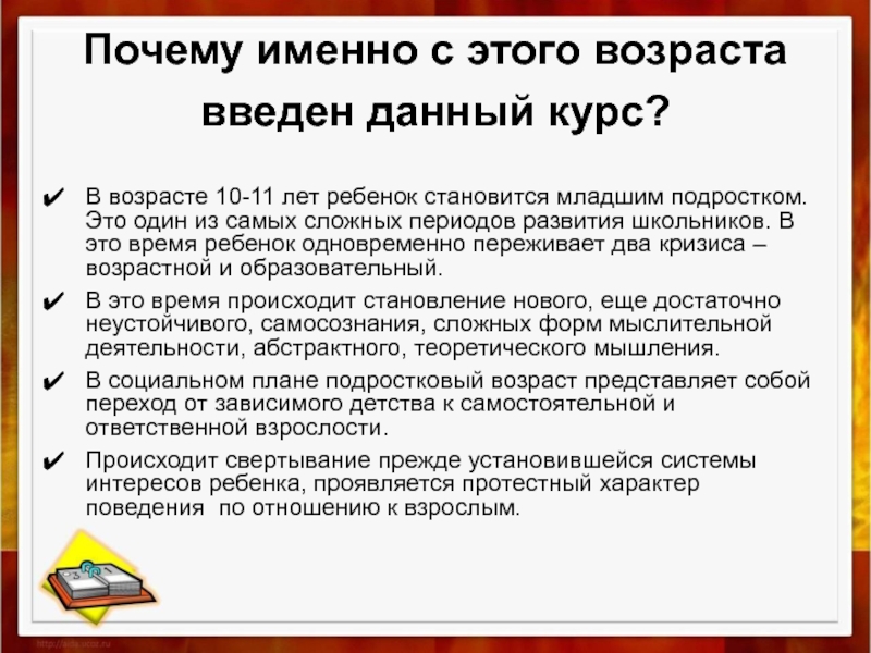 Слайд 7Почему именно с этого возраста введен данный курс?