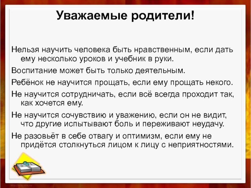 дополнительному средству нравственного развития вашего ребёнка. Вы и есть для ребёнка главный воспитатель.