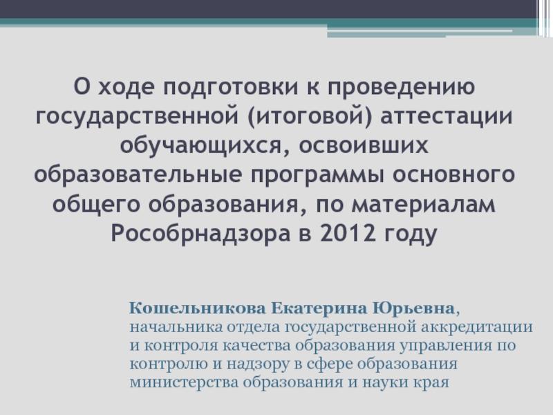 Кошельникова Екатерина Юрьевна, начальника отдела государственной аккредитации и контроля качества образования управления по контролю и надзору в сфере образования министерства образования и науки края