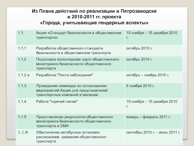 Деятельность по проекту в 2010 году
