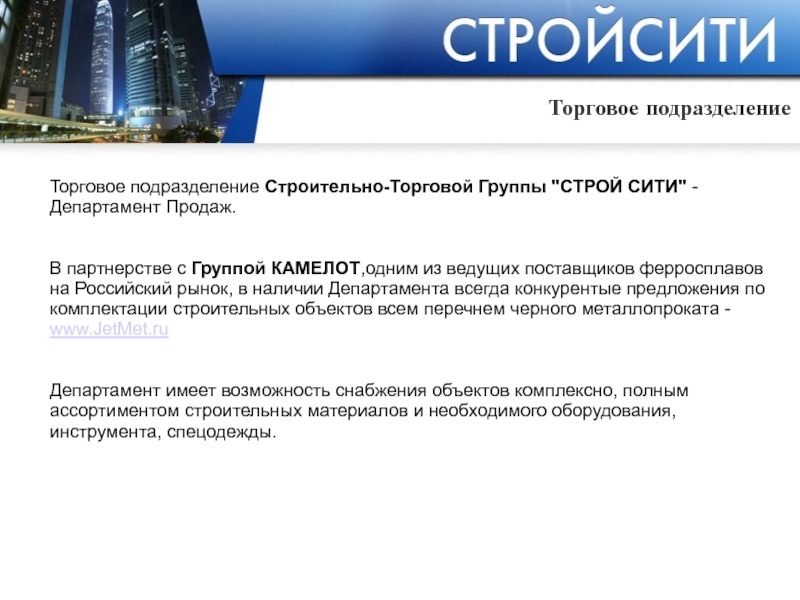 Торговое подразделение Строительно-Торговой Группы "СТРОЙ СИТИ" - Департамент Продаж.