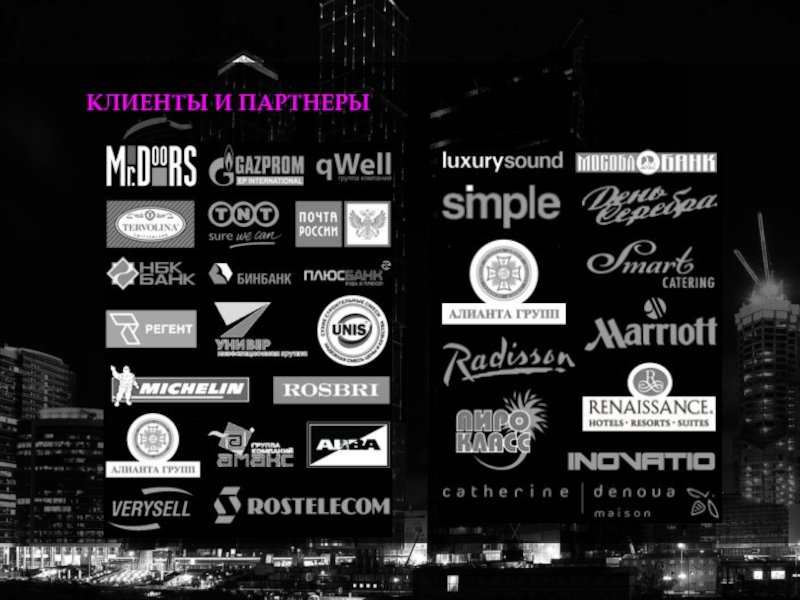 • Event маркетинг и Pr - разработка PR стратегий, партнерских программ, проработка списка задействованных СМИ, соответствующих информационному поводу и задачам, подбор и привлечение к участию звезд кино, театра, эстрады, спорта, политики, подготовка материалов для СМИ, приглашение и аккредитация журналистов, пресс-клиппинг; Pr поддержка спонсорских программ;