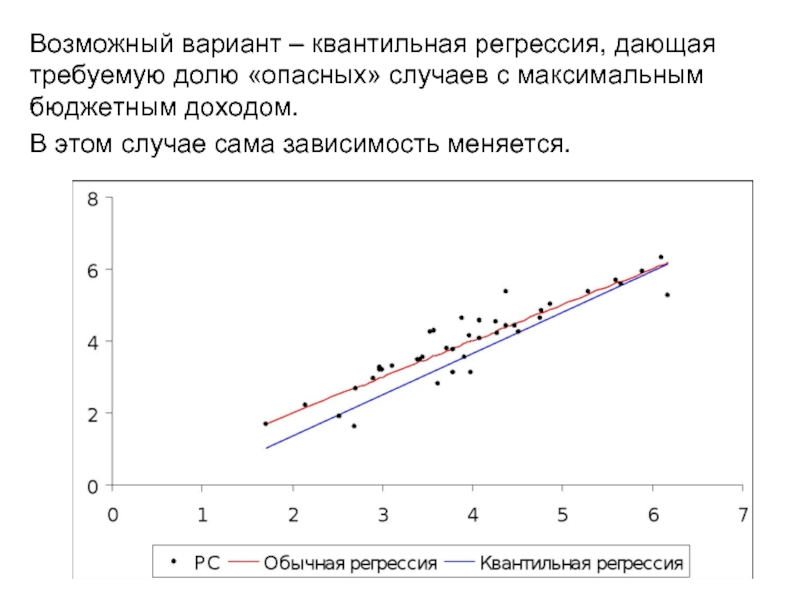 Слайд 5Возможный вариант – квантильная регрессия, дающая требуемую долю «опасных» случаев с
