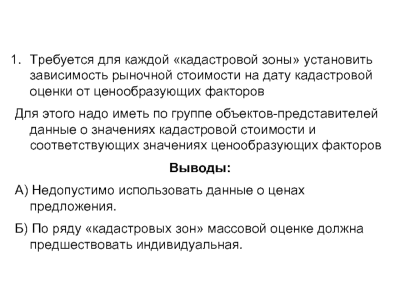 Слайд 2Требуется для каждой «кадастровой зоны» установить зависимость рыночной стоимости на дату
