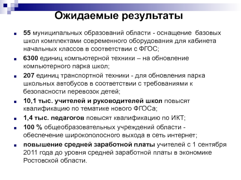 повышение средней заработной платы учителей с 1 сентября 2011 года до уровня средней заработной платы в экономике Ростовской области.