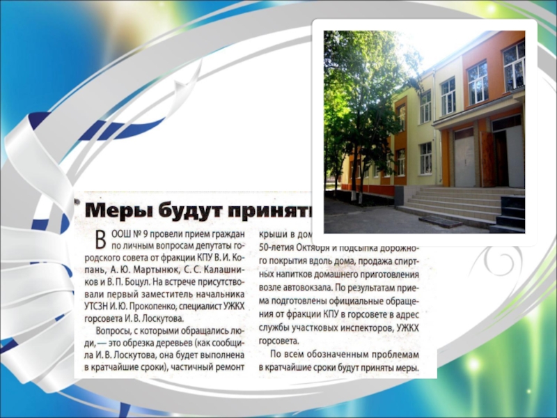 Слайд 1О нашей школе в одном номере газеты