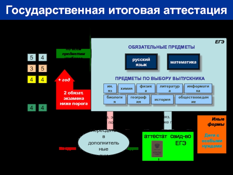 - в форме государственного выпускного экзамена - субъектами РФ, образовательными учреждениями, их учредителями