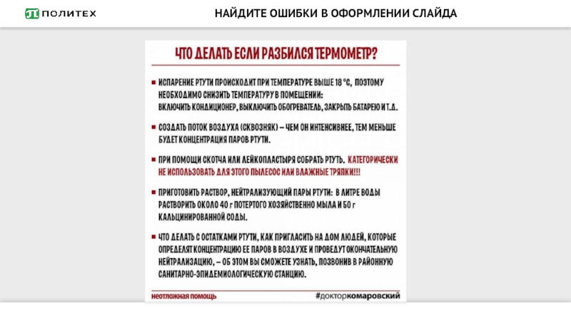 Слайд 81НАЙДИТЕ ОШИБКИ В ОФОРМЛЕНИИ СЛАЙДА