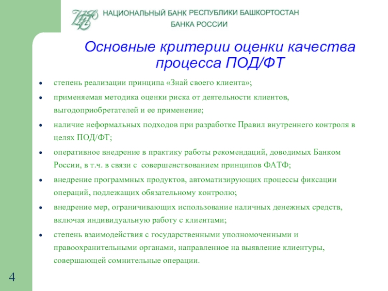 Для совершенствования работы по ПОД/ФТ банкам необходимо принять меры по следующим направлениям:
