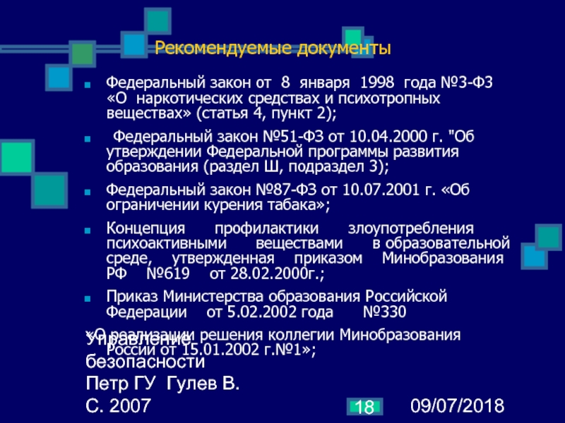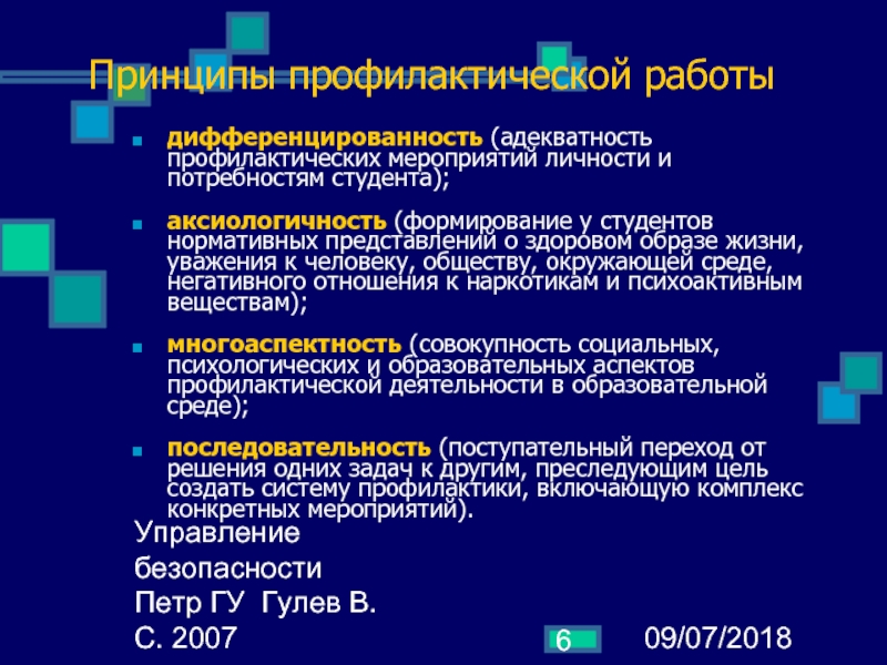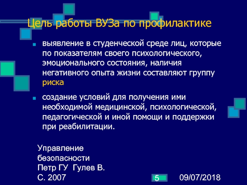Управление безопасности  Петр ГУ Гулев В.С. 2007