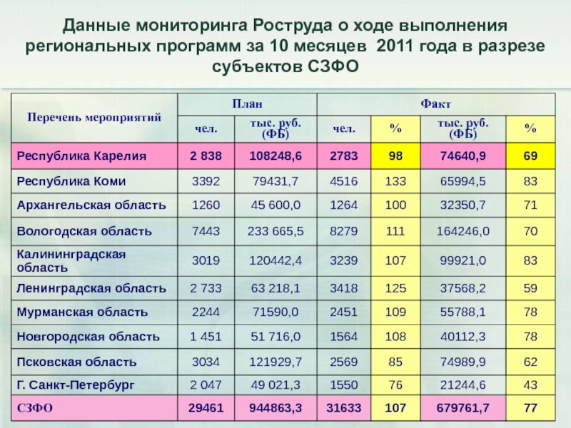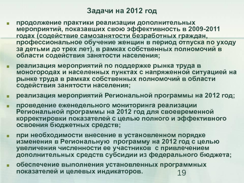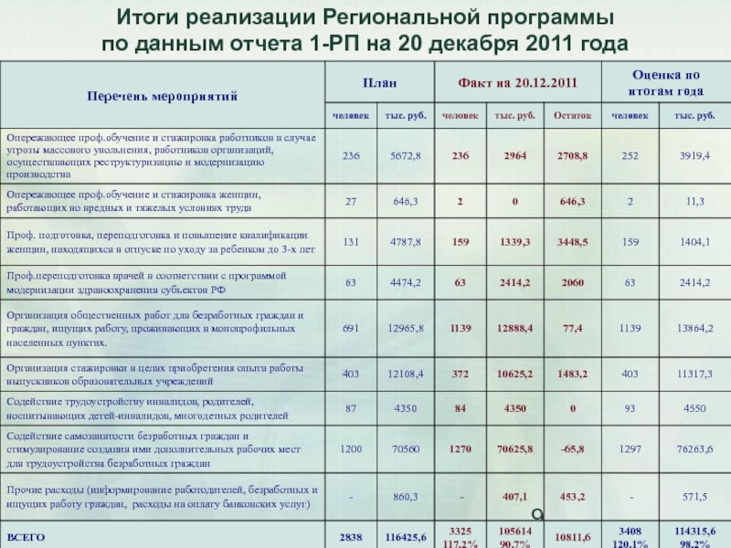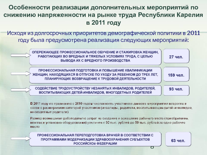 Исходя из долгосрочных приоритетов демографической политики в 2011 году была предусмотрена реализация следующих мероприятий: