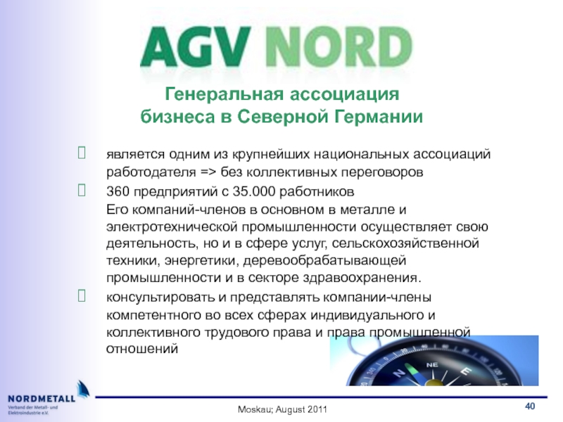 AGV NORD- general employers organisation of Northern Germany membership, structure and activities, public work in committees at federal country’s level, services for members