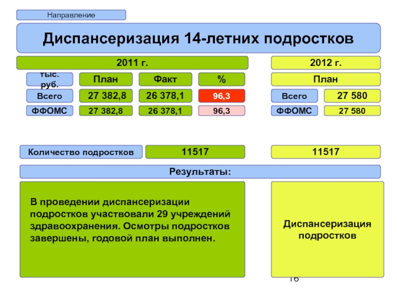 В проведении диспансеризации подростков участвовали 29 учреждений здравоохранения. Осмотры подростков завершены, годовой план выполнен.