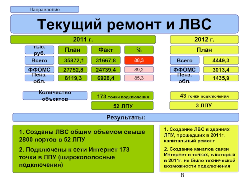 1. Созданы ЛВС общим объемом свыше 2800 портов в 52 ЛПУ