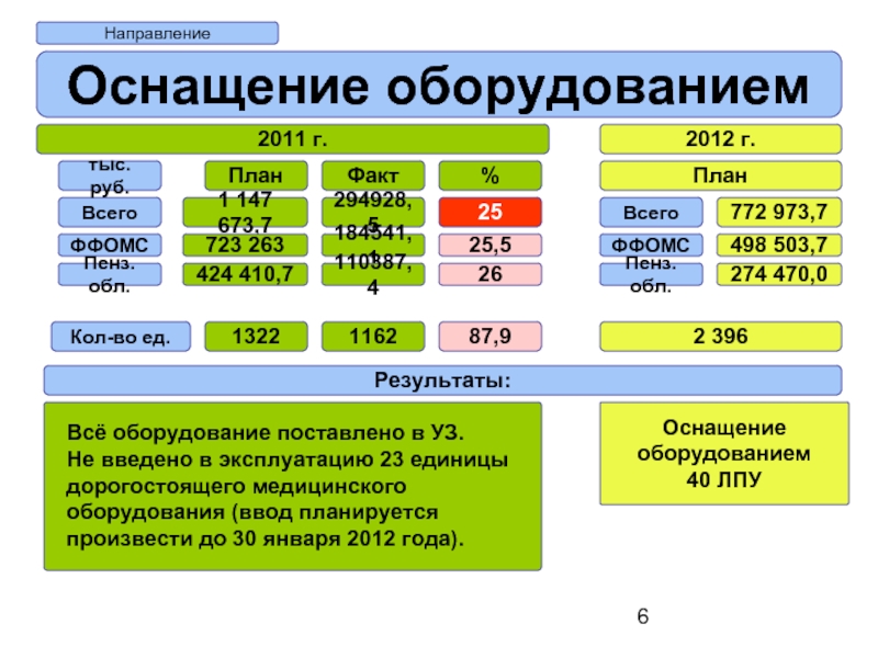 Не введено в эксплуатацию 23 единицы дорогостоящего медицинского оборудования (ввод планируется произвести до 30 января 2012 года).