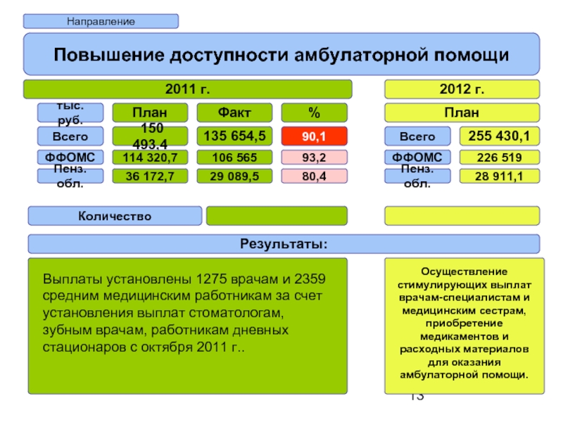 Выплаты установлены 1275 врачам и 2359 средним медицинским работникам за счет установления выплат стоматологам, зубным врачам, работникам дневных стационаров с октября 2011 г..