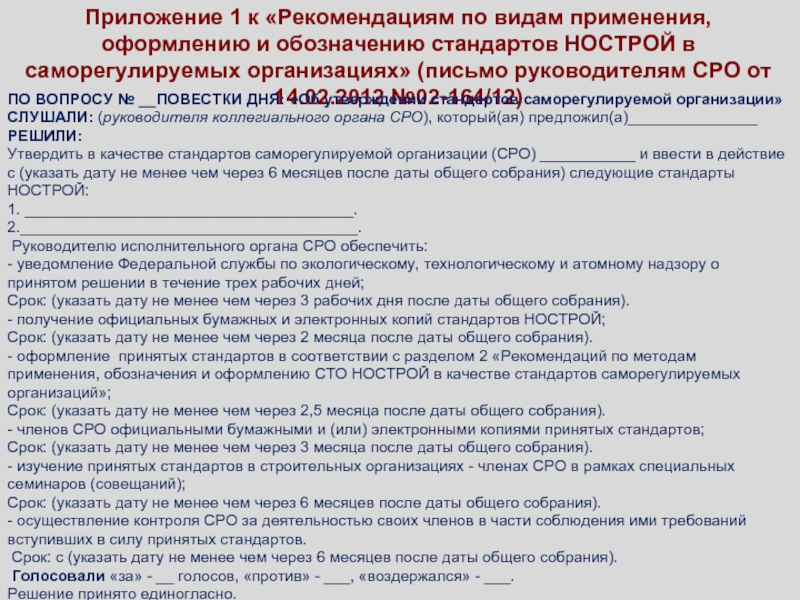 Рассмотрение стандарта (Р) на общих собраниях СРО
