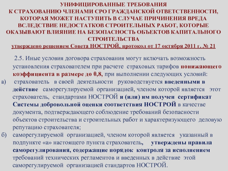 Для строительных организаций - предоставление скидок для владельцев сертификатов со стороны страховых организаций при оформлении страховых полисов (до 20% )