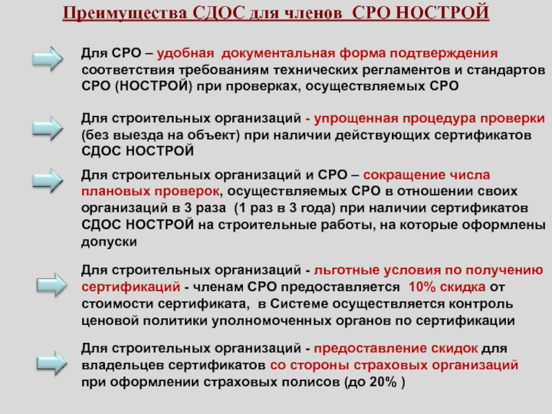 Преимущества для потребителей сертификатов СДОС НОСТРОЙ