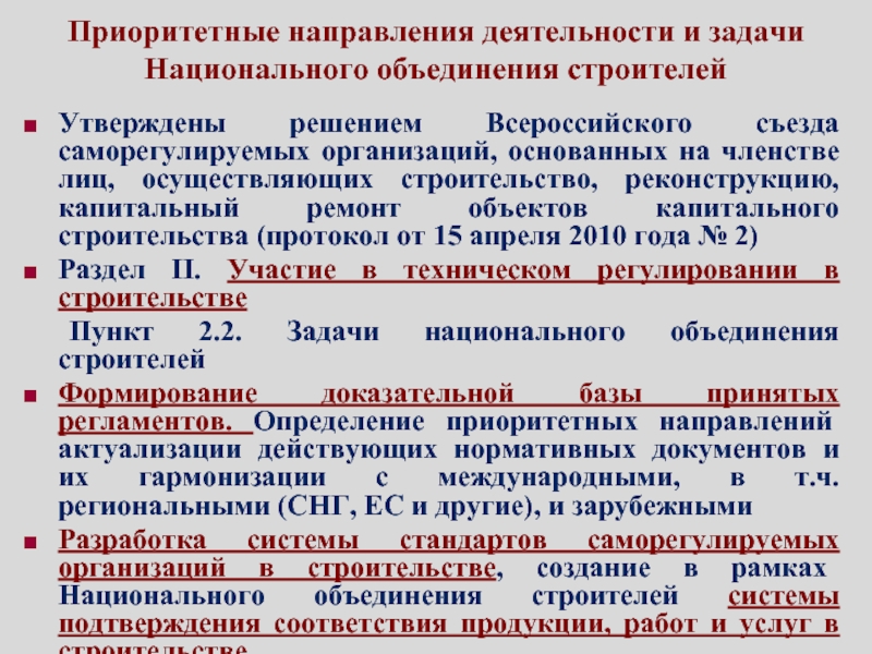 П.2.2. Задачи Национального объединения строителей: