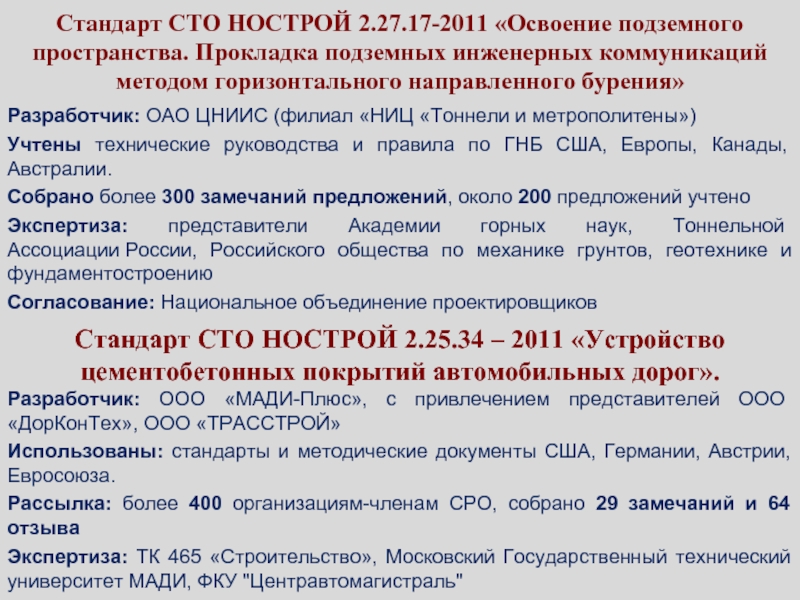 Разработка стандартов НОСТРОЙ