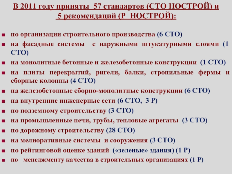 Выдержки из стандартов СРО, принятых в 2009-2010г.г