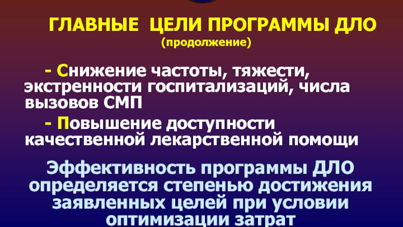 ГЛАВНЫЕ ЦЕЛИ ПРОГРАММЫ ДЛО