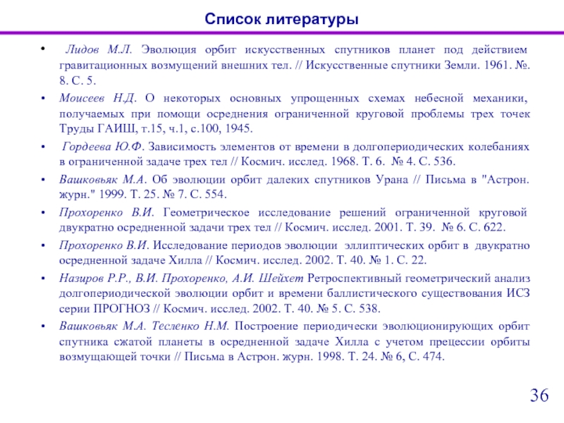 В работе Ю.Ф. Гордеевой [1968] получено выражение зависимости эволюции орбитальных элементов от времени через эллиптический интеграл первого рода.