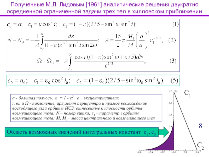 i, ω, и Ω - наклонение, аргумент перицентра и прямое восхождение восходящего узла орбиты ИСЗ, отнесенные к плоскости орбиты возмущающего тела; N – номер витка; ε1 – параметр ε орбиты возмущающего тела; M, M1– масса центрального и возмущающего тел