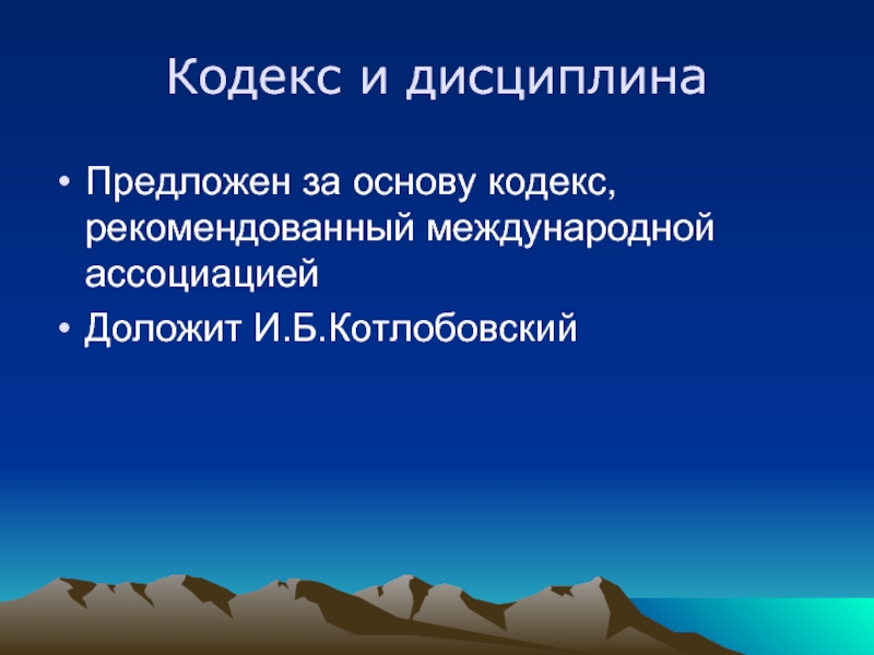 Предложен за основу кодекс, рекомендованный международной ассоциацией