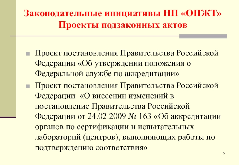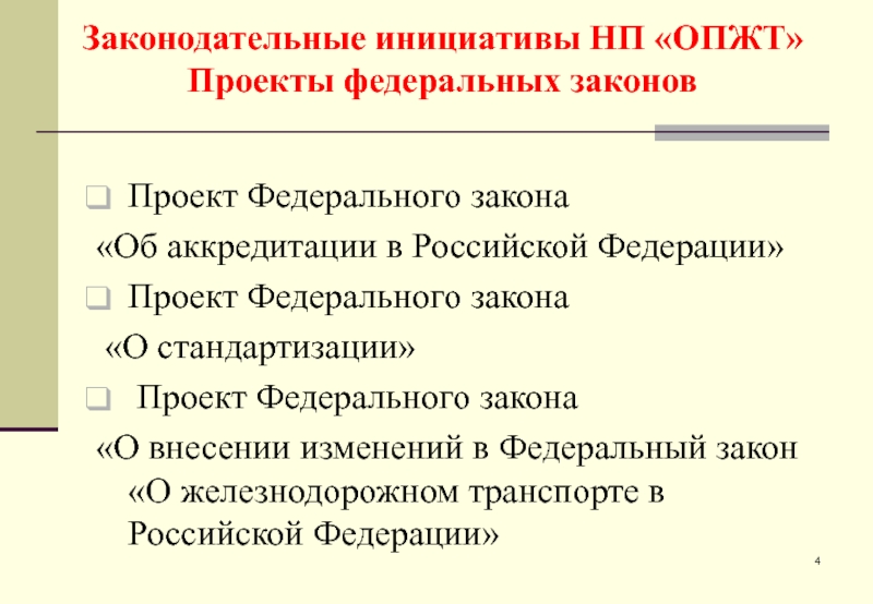 Слайд 5Законодательные инициативы НП «ОПЖТ»