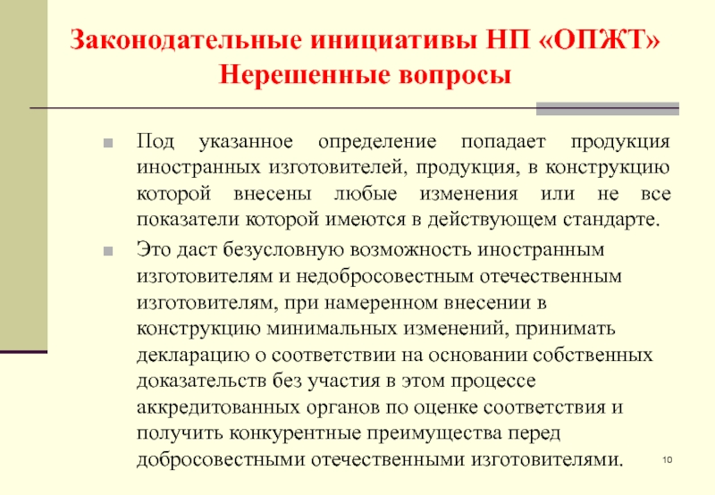 Слайд 10Законодательные инициативы НП «ОПЖТ»