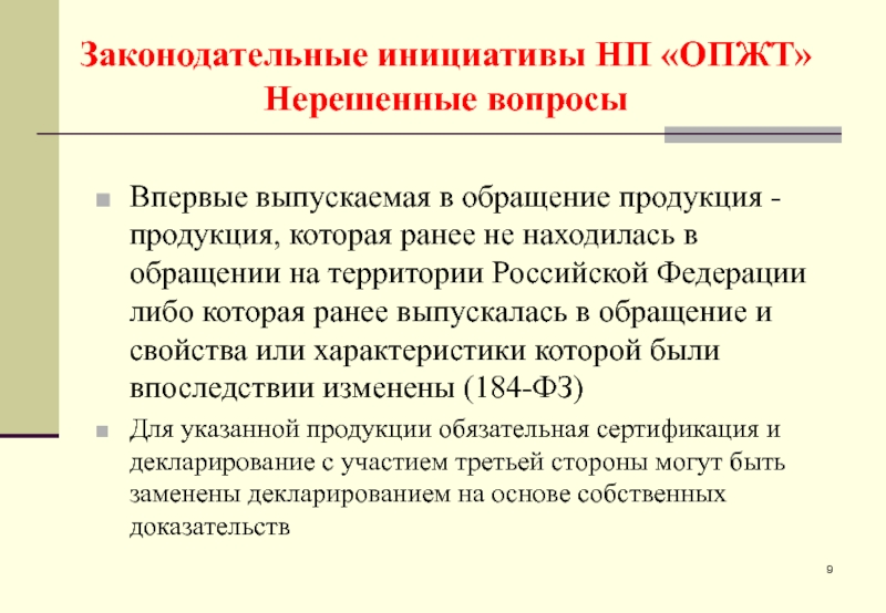 Слайд 9Законодательные инициативы НП «ОПЖТ»
