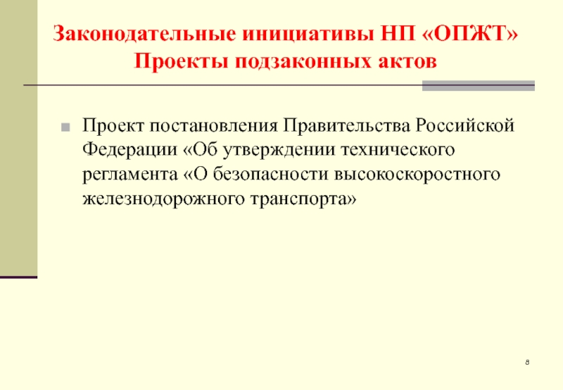 Слайд 8Законодательные инициативы НП «ОПЖТ»