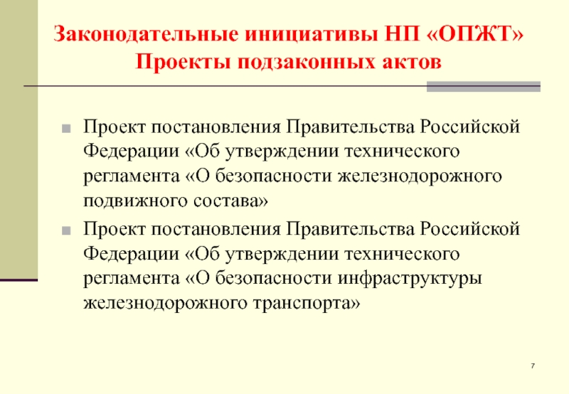 Слайд 7Законодательные инициативы НП «ОПЖТ»