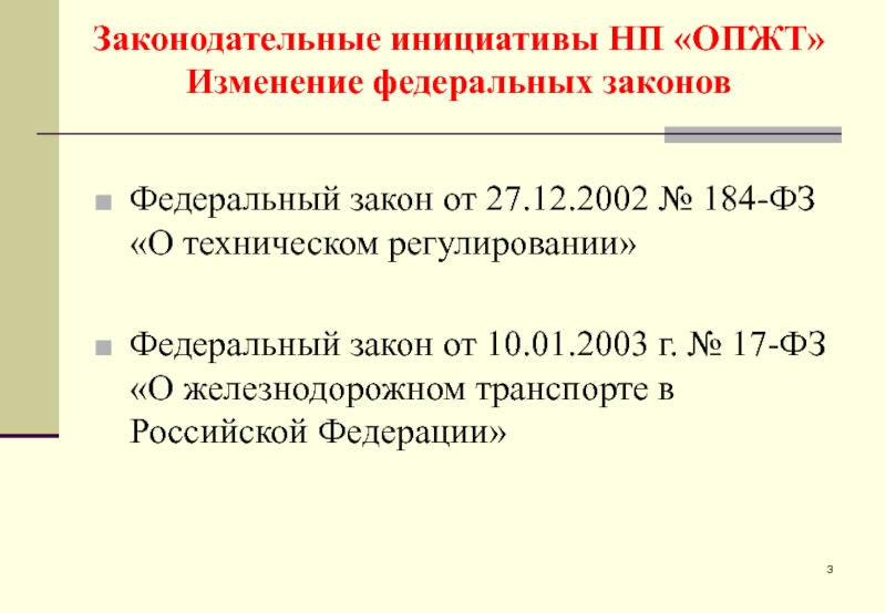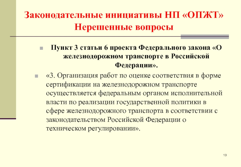 Слайд 13Законодательные инициативы НП «ОПЖТ»