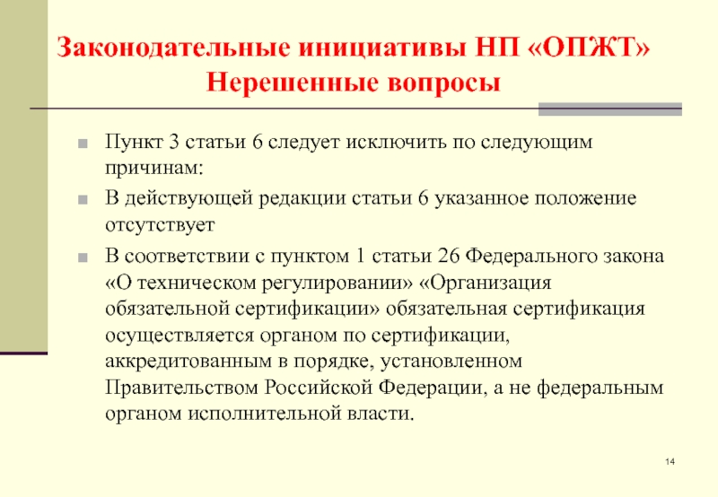 Слайд 14Законодательные инициативы НП «ОПЖТ»