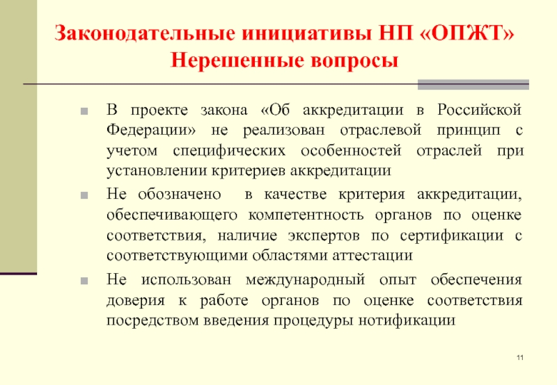 Слайд 11Законодательные инициативы НП «ОПЖТ»