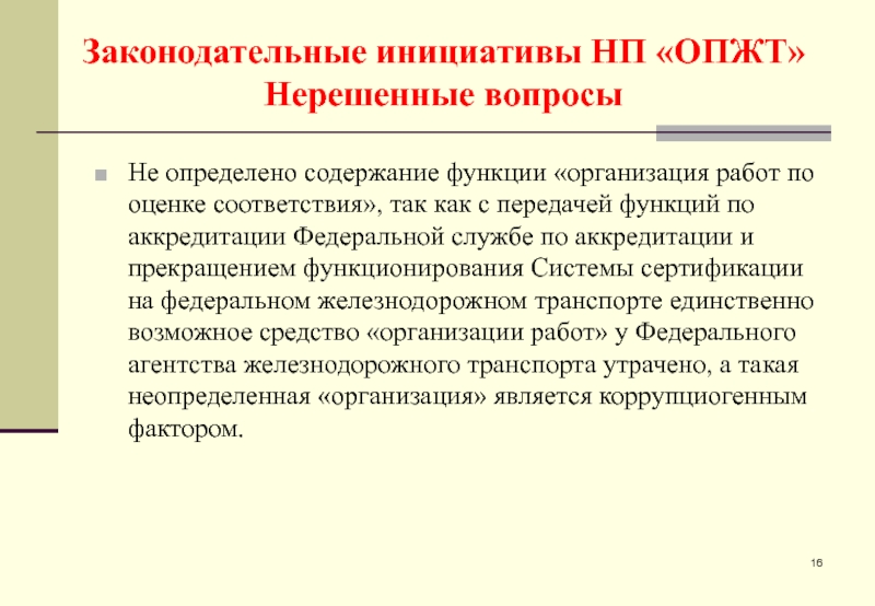 Слайд 16Законодательные инициативы НП «ОПЖТ»