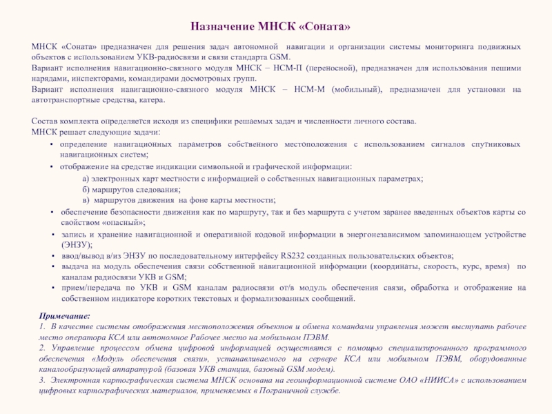 выдача на модуль обеспечения связи собственной навигационной информации (координаты, скорость, курс, время) по каналам радиосвязи УКВ и GSM;
