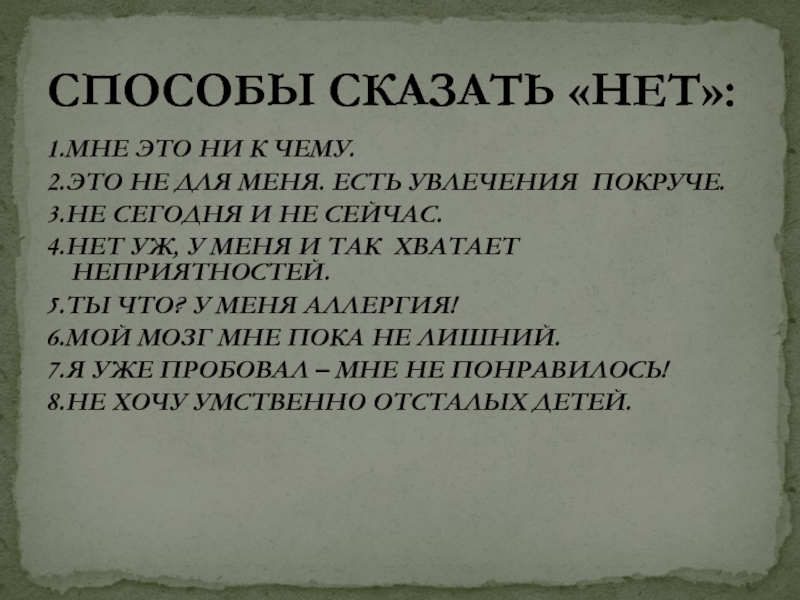 СПОСОБЫ СКАЗАТЬ «НЕТ»:
