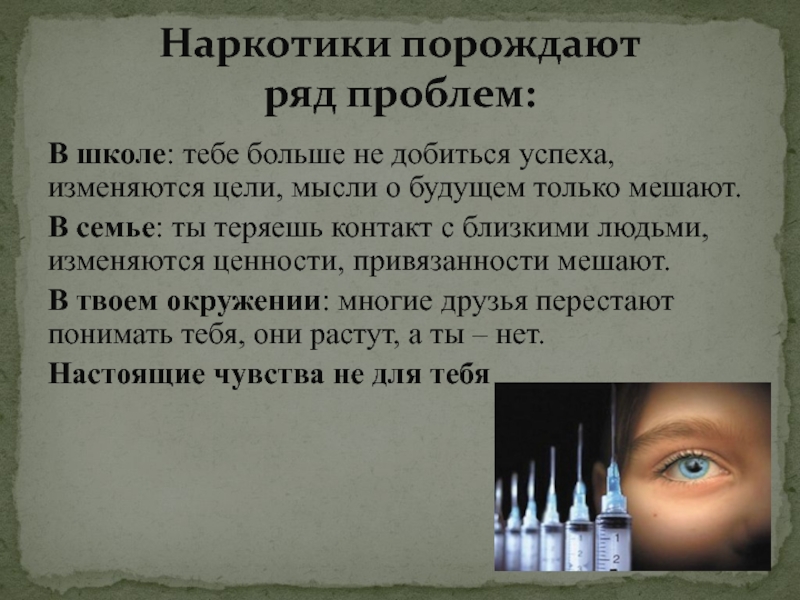 Наркотики– это прежде всего проблемы: