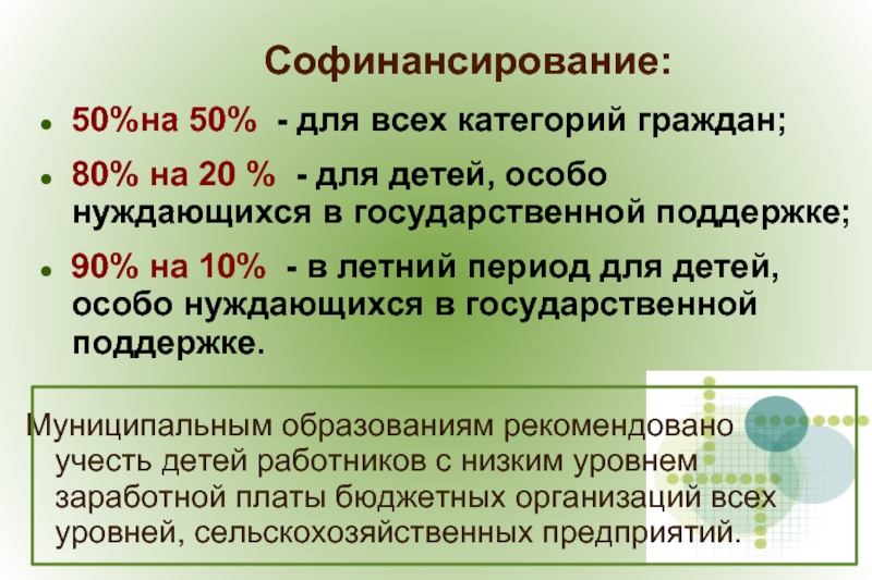 Муниципальным образованиям рекомендовано учесть детей работников с низким уровнем заработной платы бюджетных организаций всех уровней, сельскохозяйственных предприятий.