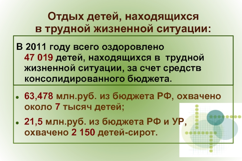 63,478 млн.руб. из бюджета РФ, охвачено около 7 тысяч детей;