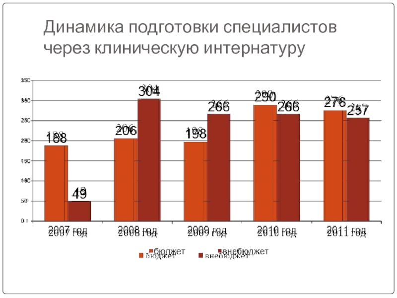 Слайд 11Динамика подготовки специалистов через клиническую интернатуру