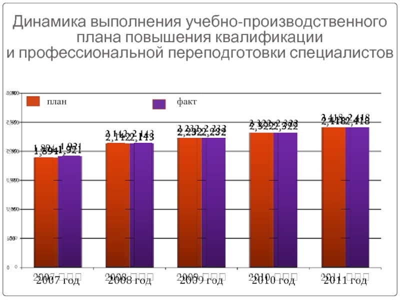 Слайд 5Динамика выполнения учебно-производственного плана повышения квалификации